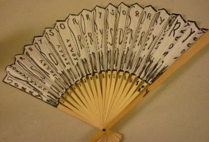 So it is not surprising that when Vivien gave each of us a plain white paper fan and asked us to depict our shadow on one side and our dream of the future on the other I immediately started on the shadow side and produced this. I wrote the word Sorry everywhere I could and outlined the whole thing in black, like a Victorian mourning letter